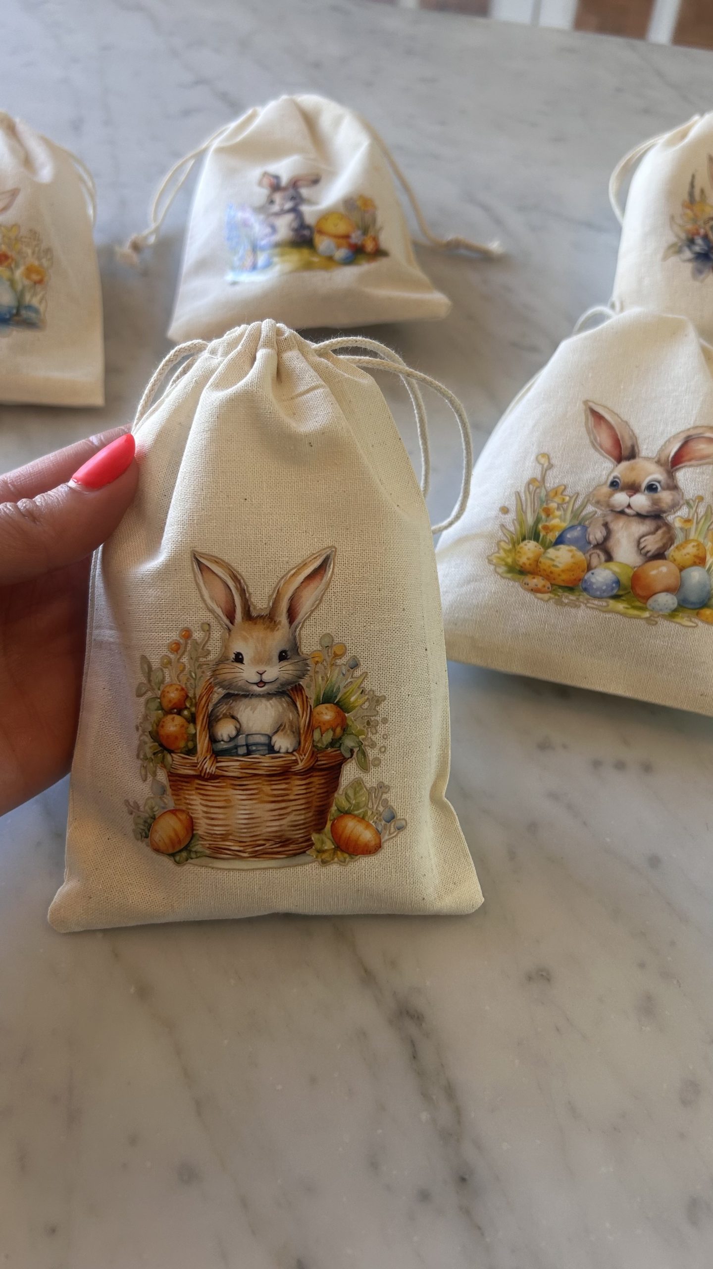 Bolsita con estampado de conejo rellena de 6 calugas de nuez.